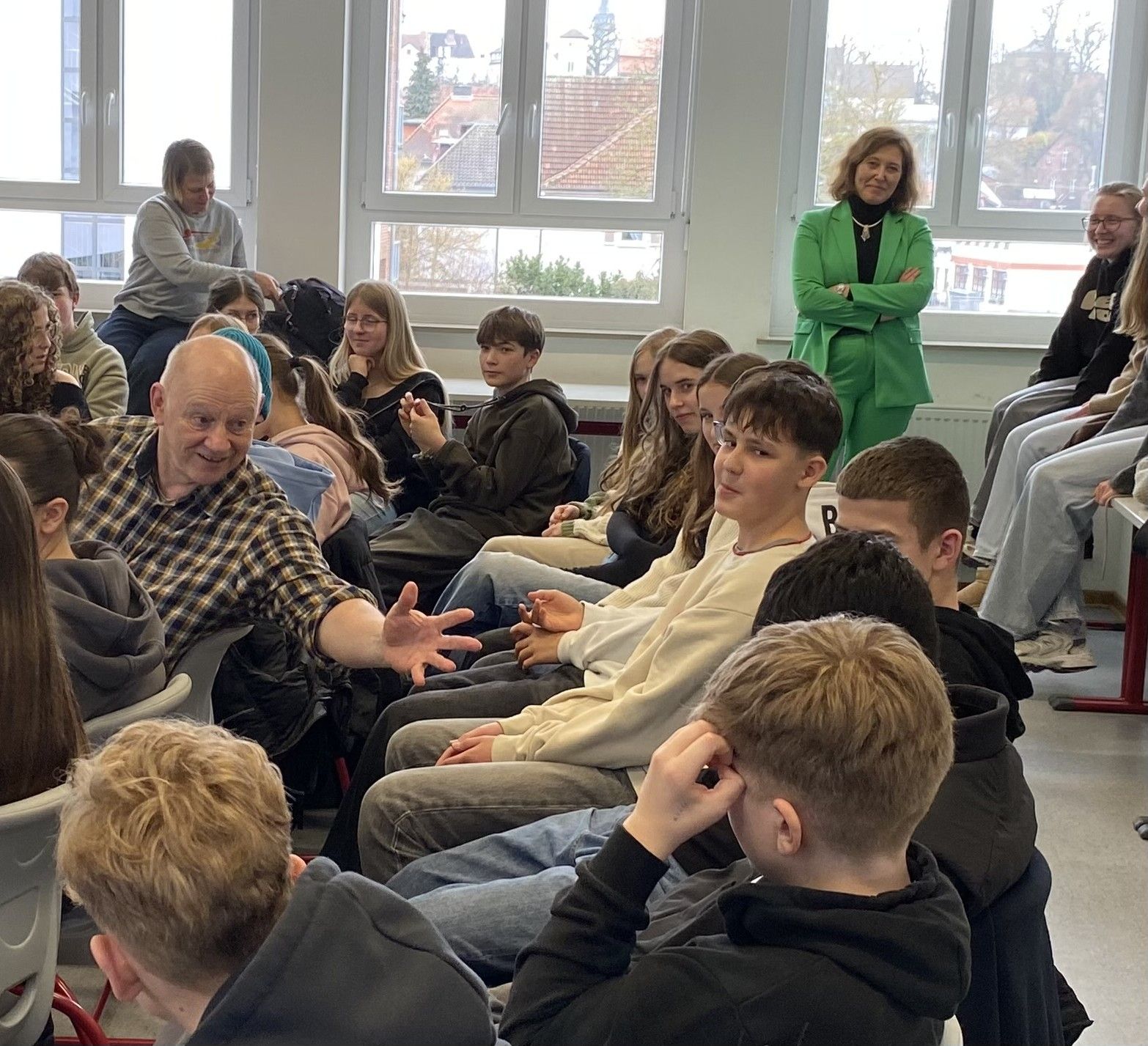 Anders als bei einer klassischen Lesung gestaltete Herr Devise die Veranstaltung interaktiv, indem er Fragen zum Inhalt des Buches stellte. So konnten die Schülerinnen und Schüler ihre Französischkenntnisse in einem Kontext außerhalb des Unterrichts anwenden. Außerdem gelang es ihm auf Anhieb, eine lockere und humorvolle Atmosphäre im Klassenraum zu schaffen.