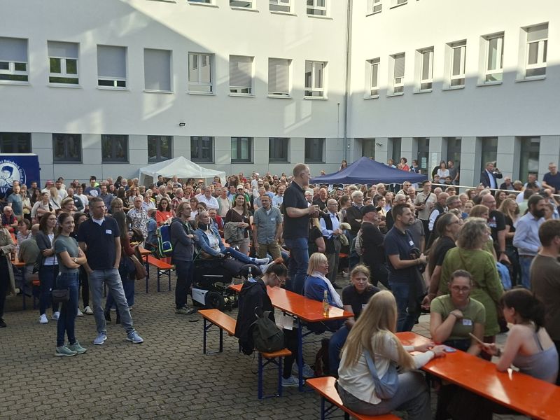 Fröhliche Gesichter, herzliche Begegnungen, interessante Gespräche – Es war ein rundum gelungener Abend mit besonderer Atmosphäre: Bei bestem Spätsommerwetter fand am 30. August ein großes Ehemaligentreffen am Schwalmgymnasium statt. Rund 650 Ehemalige waren der Einladung der Schule gefolgt, ob aus der Schwalm, aus ganz Hessen, aus sämtlichen deutschen Bundesländern oder sogar aus dem Ausland, etwa aus dem niederländischen Rotterdam und aus Georgia/USA. Dabei reichte die Spannweite der Abschlussjahrgänge von 2025 zurück bis ins Jahr 1962! Auch viele aktive und ehemalige Lehrkräfte nutzten die Gelegenheit, frühere Schülerinnen und Schüler sowie Kolleginnen und Kollegen wiederzutreffen.