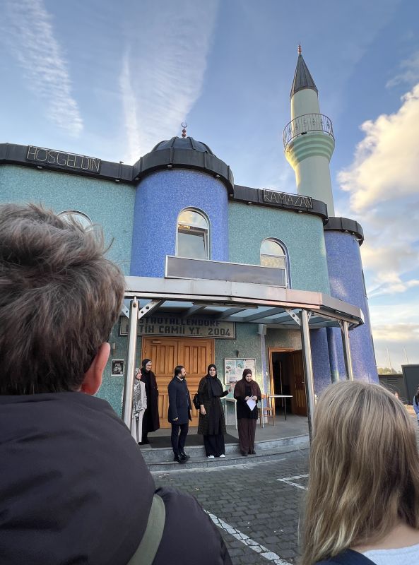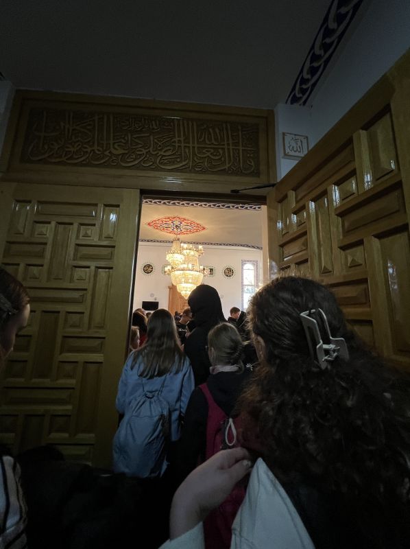 „Mit dem ganzen Jahrgang 7 gingen wir zum Bahnhof, von wo wir mit dem Zug nach Stadtallendorf gefahren sind. Dort hatten wir einen ziemlich langen Weg“, erzählt Paula, „doch dann standen wir vor der Moschee. Sie war groß und schön.“