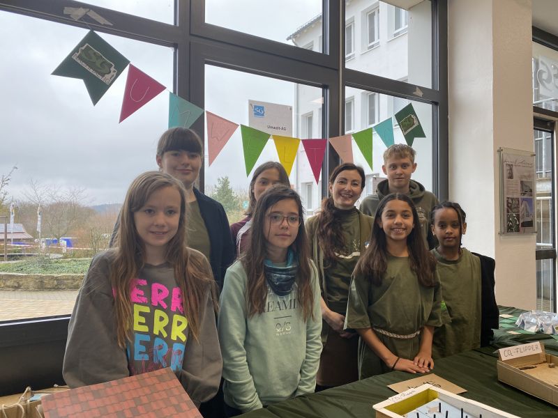 Wenn an einem Wochenende in den Ferien bei strömendem Regen Mitglieder der Umwelt-AG aktiv sind, dann hat das einen guten Grund: Unter dem Motto „Klima-Bäume für Schwalmstadt“ wurde am 4. Oktober die erste Pflanzung in Kooperation zwischen der Stadt Schwalmstadt, dem Förderverein Kulturlandschaft Schwalm e.V. und der Umwelt-AG des Schwalmgymnasiums auf dem Ziegenhainer Bauernmarkt initiiert. In Begleitung einer Basaltstele pflanzten wir eine Linde am Paradeplatz, welche der Schwälmer Brotladen freundlicherweise sponserte.