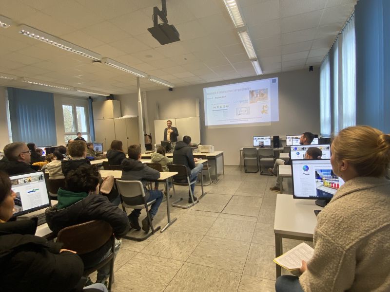 Zunächst sorgten die Streicher-AG von Frau Simon und der Wahlunterrichtskurs Darstellendes Spiel von Frau Ludes für einen ansprechenden Start in einen spannenden Vormittag. Nachdem Schulleiter Herr Cimiotti die Anwesenden mit allgemeinen Informationen über das SG versorgt hatte, machten sich die rund 250 Gäste in Kleingruppen auf den Weg, die Schule zu erkunden. Verschiedene Lehrkräfte begleiteten die Touren und hatten Antworten auf sämtliche Fragen parat. Andere empfingen die Gruppen an ihrer Station, die sie zusammen mit engagierten Schülerinnen und Schülern vorbereitet hatten. Zu sehen sind hier einige Einblicke in die Stationen Mathematik, Physik, Informatik, Französisch, Religion, Geographie, Mediathek, Umwelt-AG und Wahlunterricht Präsentieren.