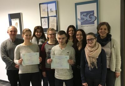 Glücklich und zufrieden konnten sieben Schülerinnen und ein Schüler der Oberstufe die Urkunde über das bestandene französische Sprachdiplom DELF entgegennehmen.